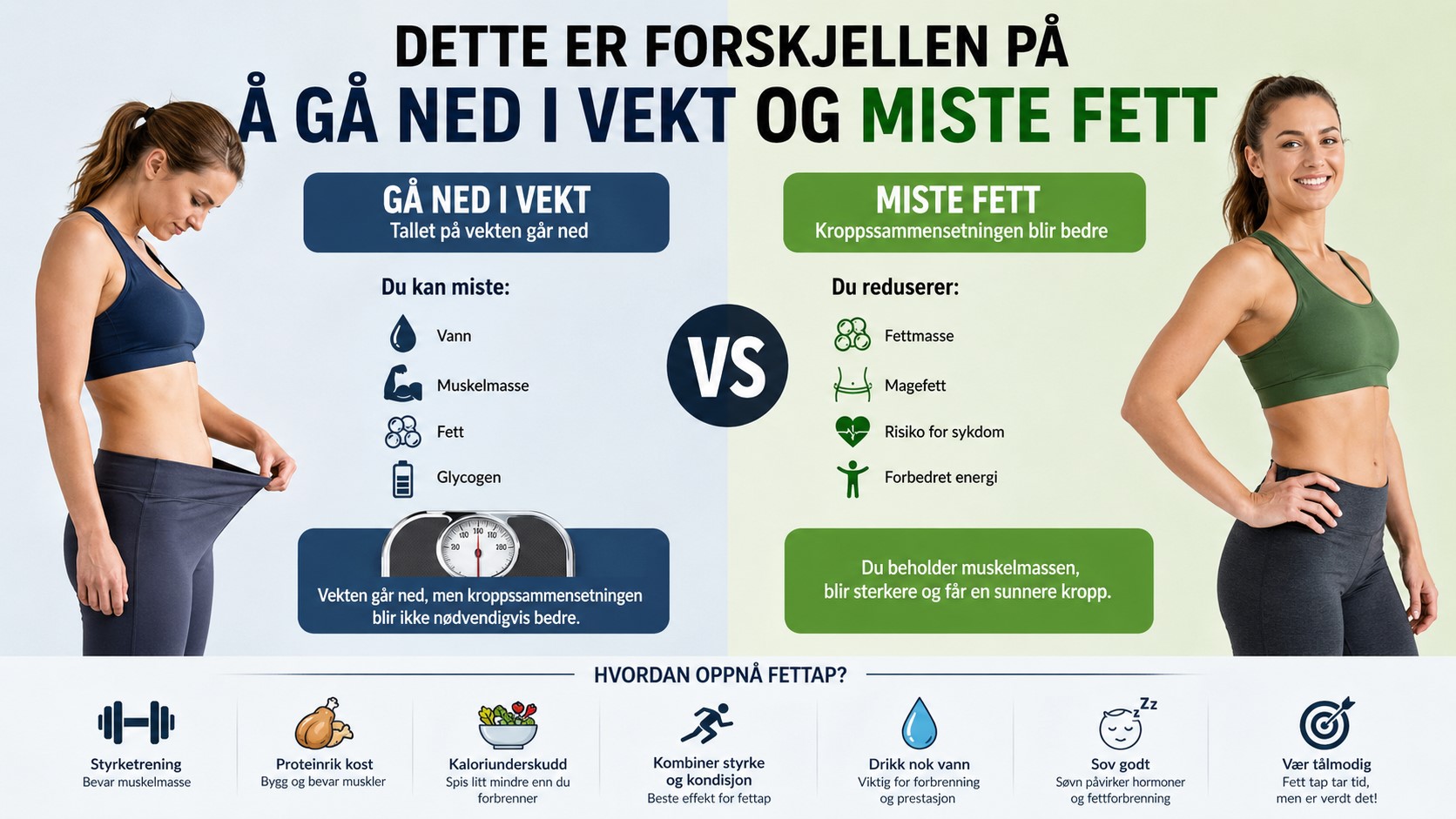 Å forstå at dette er forskjellen på å gå ned i vekt og miste fett kan endre hele tilnærmingen din til trening og kosthold. Vekttap alene gir ikke hele bildet – det er fett tap som virkelig teller.