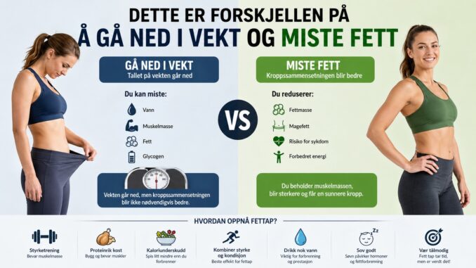 Når folk starter en trenings- eller kostholdsreise, er det én ting de fleste fokuserer på: tallet på vekten. Men sannheten er at dette er forskjellen på å gå ned i vekt og miste fett – og det er en forskjell som kan avgjøre om du lykkes eller ikke.