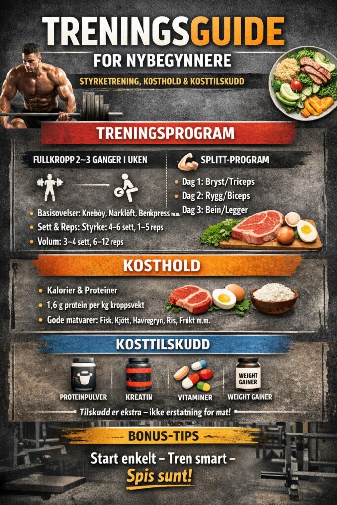 Det lanseres stadig nye treningsprogram, dietter og kosttilskudd som skal gjøre veien kort til en sterk og veltrent kropp. I dette virvaret kan det være lett å gå seg vill som nybegynner innen styrketrening og kroppsbygging.